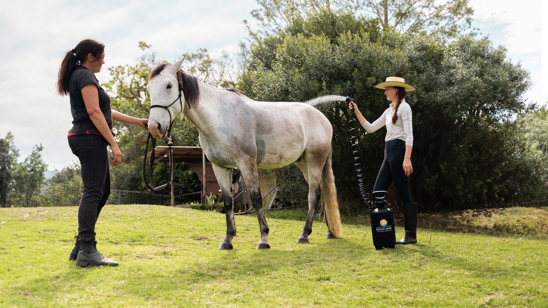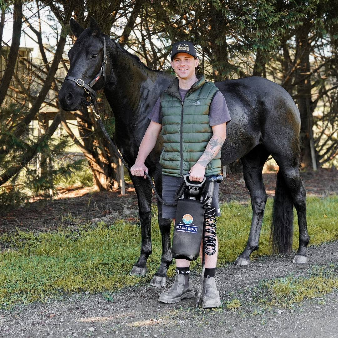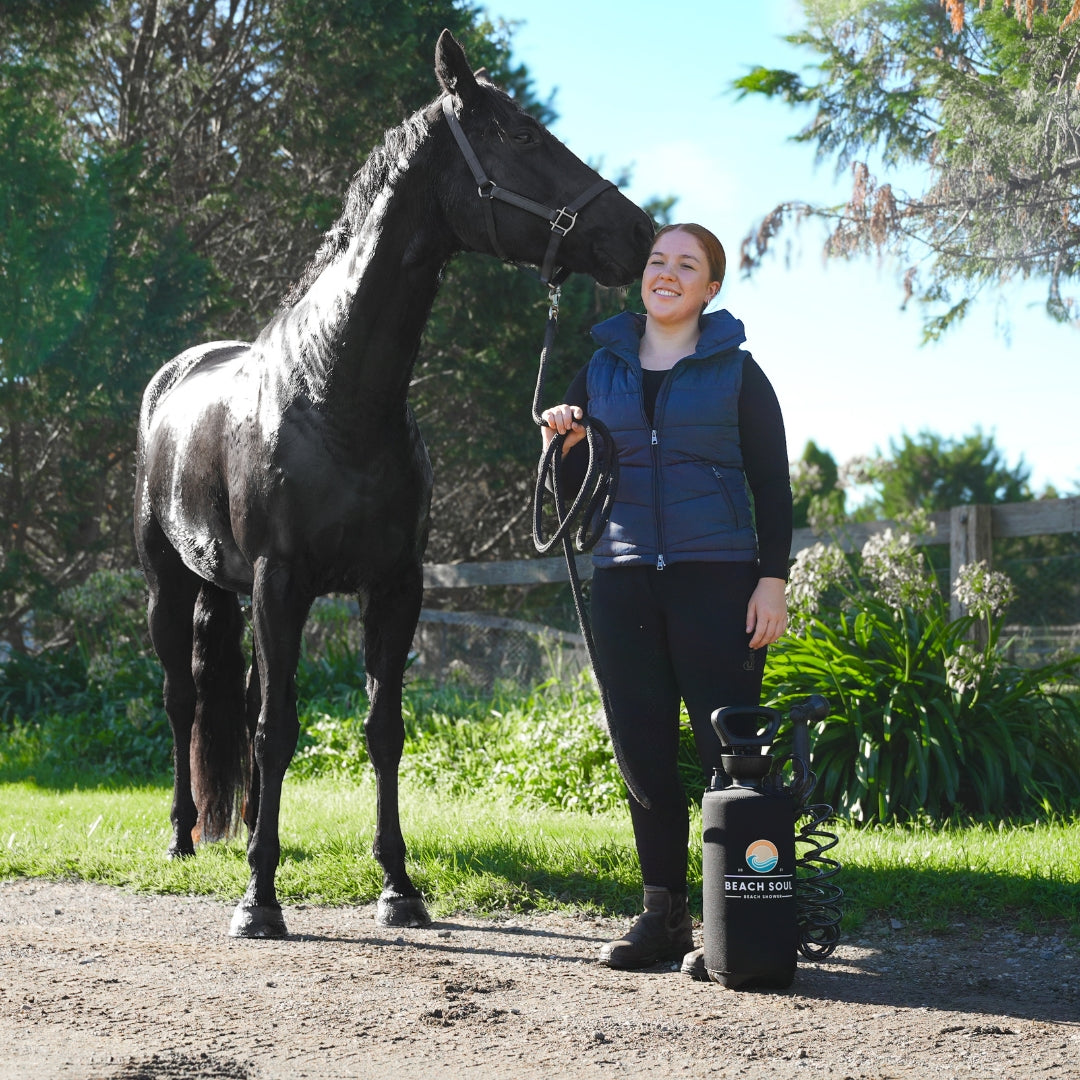 Got a horse or pony who hates cold water? Fill your Beach Soul shower with comforting warm water instead.