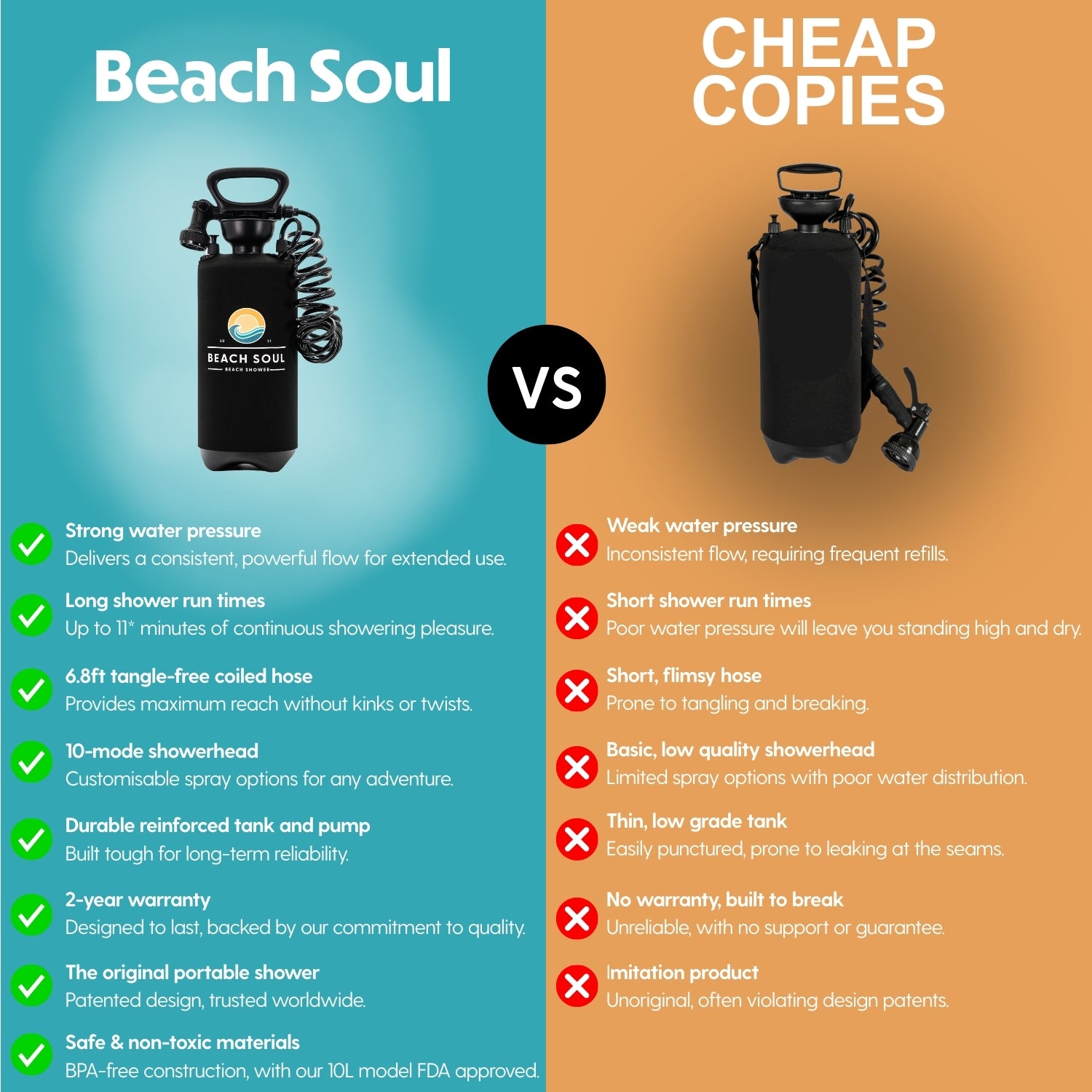 Since we introduced our design-patented portable showers, many imitations and copycats have surfaced - but not all are created equal.