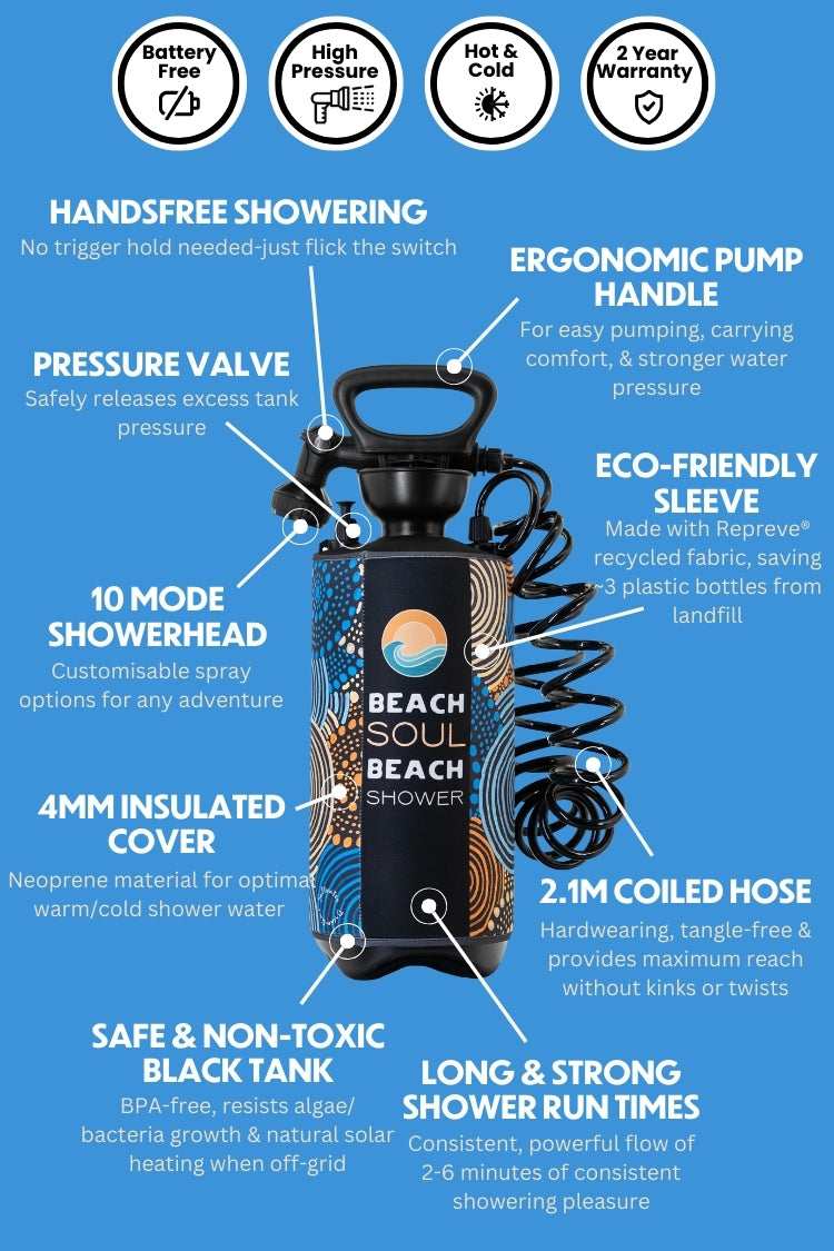 For couples, surfers, campers or larger families you’ll find a 8L everyday shower or a 10L pro shower is perfect.