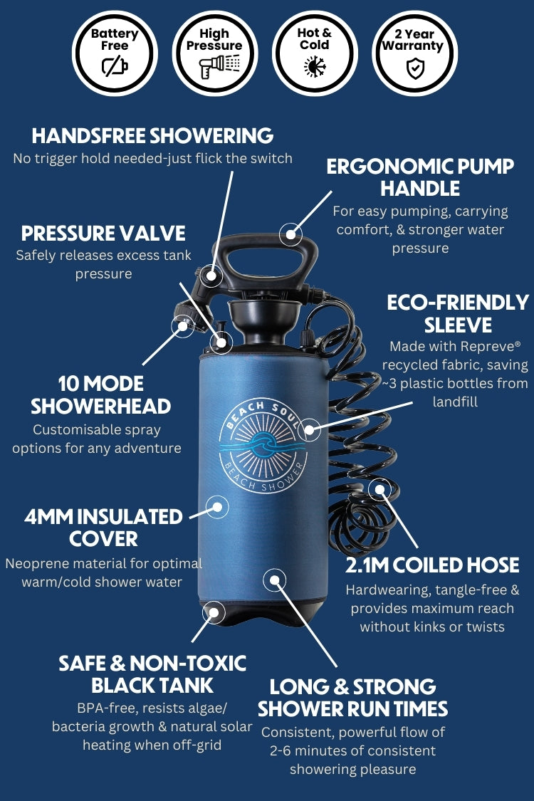 For couples, surfers, campers or larger families you’ll find a 8L everyday shower or a 10L pro shower is perfect.